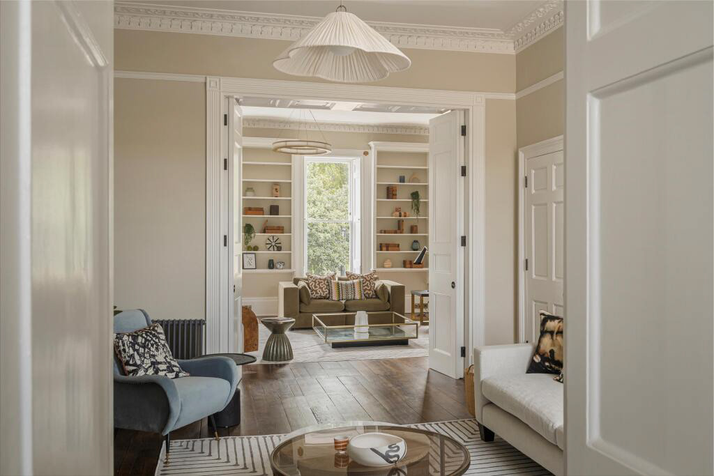 Originally used as offices, the Grade I listed structure is being reconfigured into two townhouses and a self-contained apartment, carefully integrating original features with modern residential use.