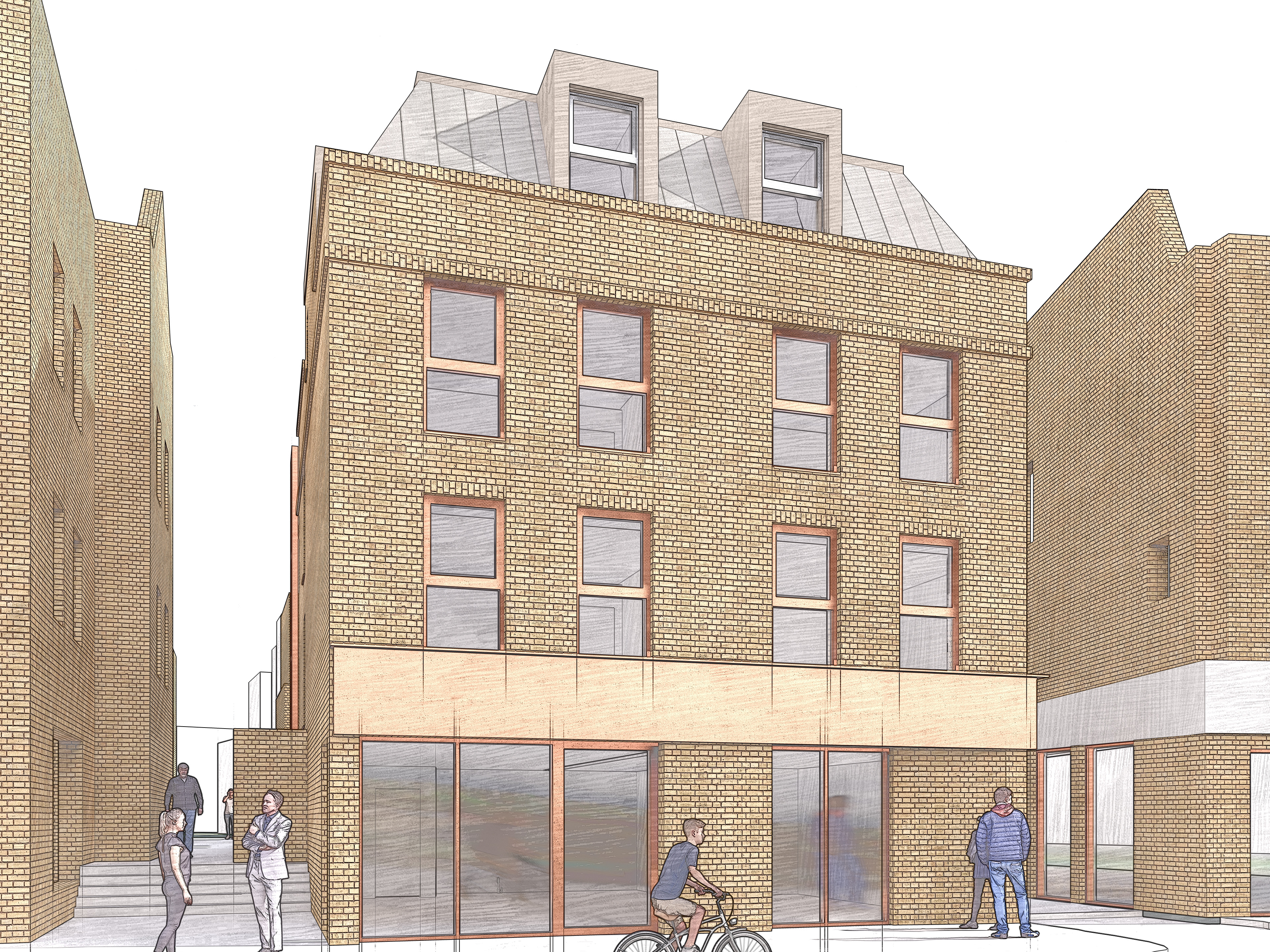 Architecturally, the proposed home responds to the existing cottages with contemporary features such as an oversized chimney and large openings which open up to views of the estate.